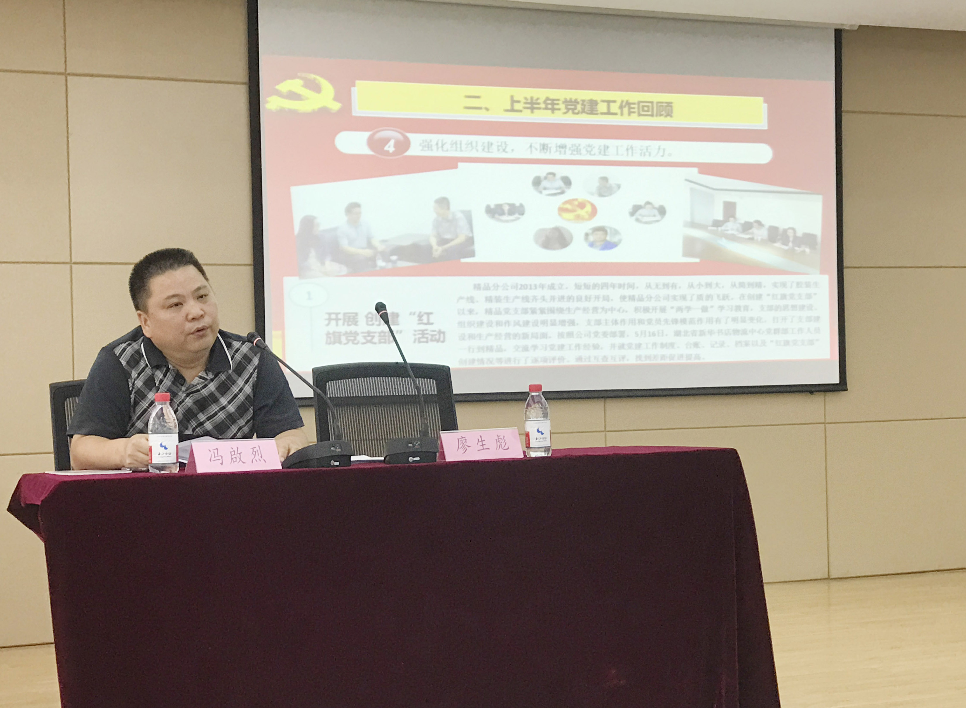 黨課開始之前,公司黨委書記馮啟烈首先向廖書記及與會黨員,回顧了今年上半年以來公司黨建工作開展的情況。上半年開展了中心組理論學習、“支部主題黨日”活動、紅色教育活動、“我與企業(yè)共成長”主題團日活動等主題鮮明的黨建活動,通過主題活動,切實將黨建工作虛功實做,充分發(fā)揮了作用,生產經(jīng)營各項工作扎實推進,并取得了階段性的成果?;仡櫩偨Y上半年黨建工作后,部署安排了下半年黨建工作任務。