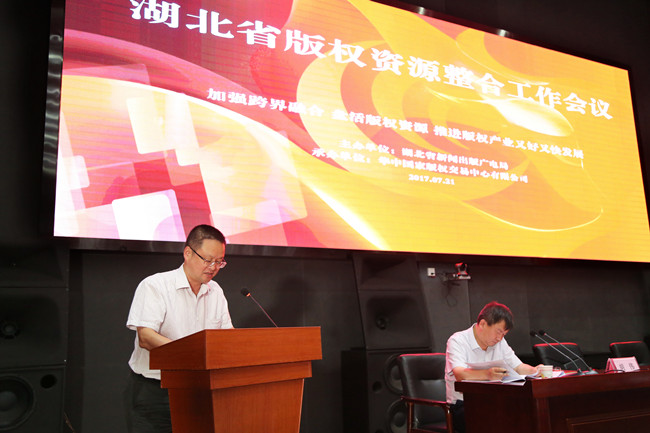 7月21日上午,湖北省版權(quán)資源整合工作會議在華中國家版權(quán)交易中心召開。會議旨在加強跨界融合,盤活版權(quán)資源,推進版權(quán)產(chǎn)業(yè)又快又好發(fā)展。湖北省新聞出版廣電局局長張良成出席并講話。出席會議的領(lǐng)導(dǎo)還有湖北省版權(quán)局專職副局長胡偉、長江出版?zhèn)髅焦煞萦邢薰靖笨偨?jīng)理萬智等。