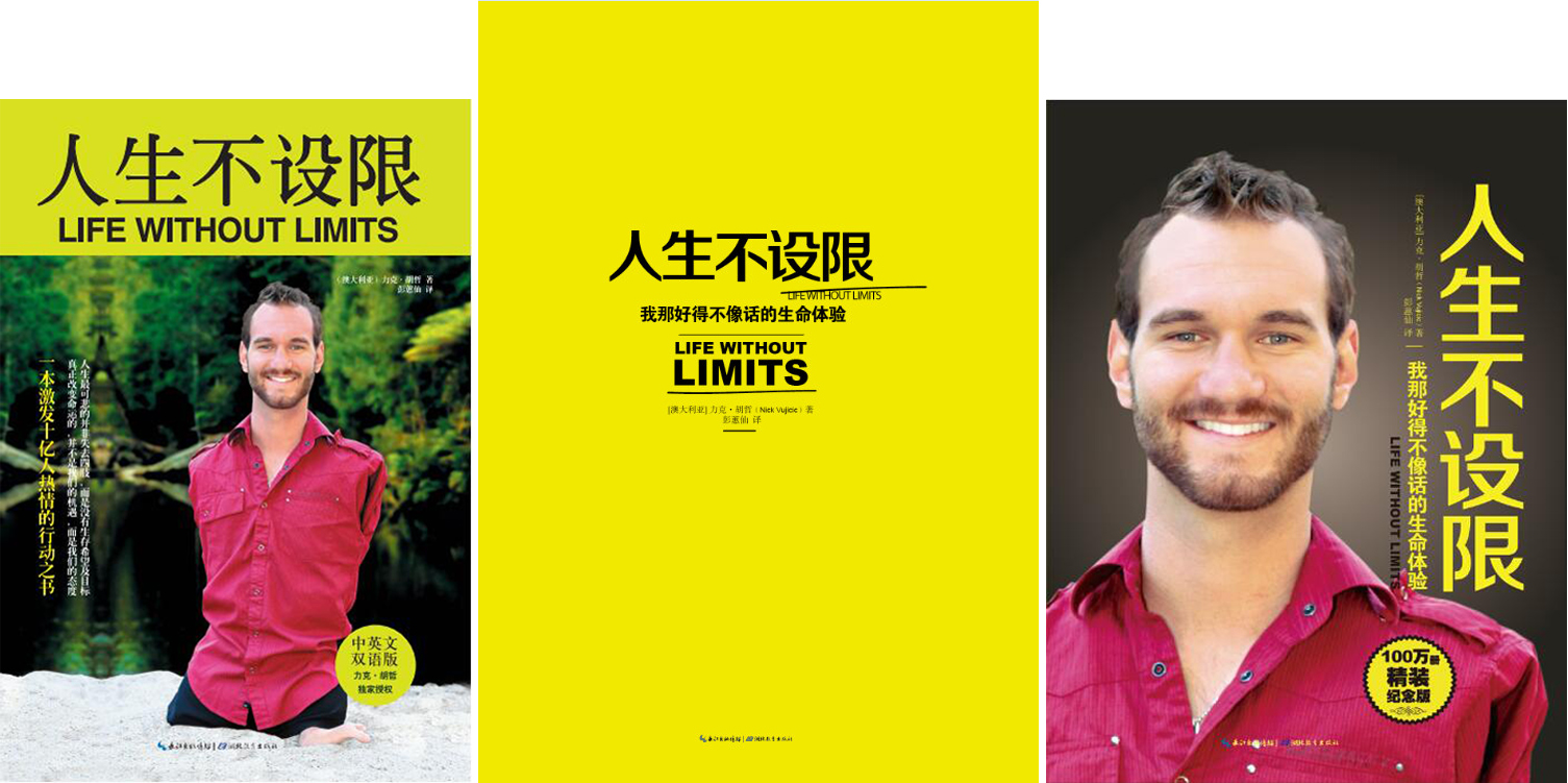 《人生不設(shè)限》為“澳洲生命斗士”力克·胡哲所著的第一本書,在全球暢銷數(shù)百萬冊(cè)。湖北教育出版社推出的中文版、中英對(duì)照版、精裝紀(jì)念版三個(gè)版本,均多次加印,圖書銷量一直占據(jù)各類暢銷排行榜前列,總發(fā)行量已達(dá)50萬冊(cè)以上。這是一本撼動(dòng)數(shù)億人心靈的勇氣之書,一本用生命見證希望的勵(lì)志經(jīng)典。作者力克·胡哲身患海豹肢癥,天生沒手沒腳,卻從一無所有、畏縮自卑,到一無所缺,迸發(fā)出無窮的自身能量,活出不受限的生命奇跡。他不但自己料理生活,而且能夠和一般人一樣,游泳、打球、沖浪、打高爾夫,并且大學(xué)畢業(yè)。現(xiàn)在他到處演講,鼓舞那些四肢健全但是生活卻消沉低落的人。