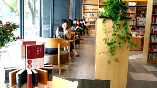 重裝后的書店經(jīng)營面積擴(kuò)展至1300平方米,倡導(dǎo)“圖書+文化+”新模式,提供借、閱、購等體驗式服務(wù)。在這里,溫暖的黃色燈光、映入眼簾的木質(zhì)書架、淡褐色的地板、書店臨街的落地玻璃,使整個書店在古樸中展露出時尚的氣息,給人溫馨明快的感覺,讓人流連忘返。
