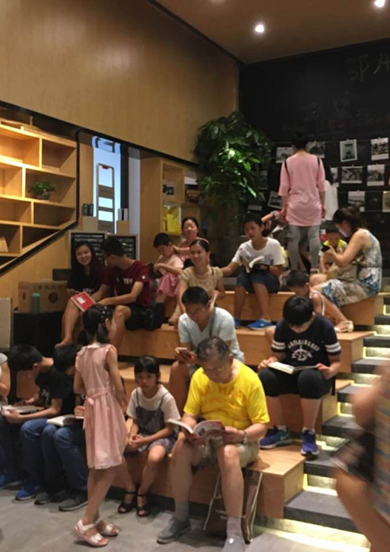 每天晚上7點至7點半,讀者們爭相報名參加書店舉行的“朗讀者”活動?!拔覀兠總€人都只是路人甲,經(jīng)歷著自己人生的浮夸,那回憶是一本泛黃的筆記,或留笑容;那未來是一片漆黑的迷惘,或有向往。無事時,讀本自己喜歡的書,品味著、享受著……”活動受到了朗讀愛好者的追捧,在大家深情的朗讀中,一幅幅生動的畫面浮現(xiàn)于眼前,或憂傷或溫暖,令人感慨萬千。