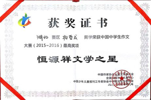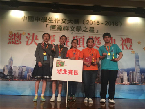 (中國中學生作文大賽2015~2016“恒源祥文學之星”高中組合影<右2為湖北賽區(qū)楊哲成同學>)