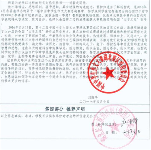 這里特別奉上推薦信的內容哦!湖北賽區(qū)組委會也將繼續(xù)關注和助力同學們實現(xiàn)名校夢想!