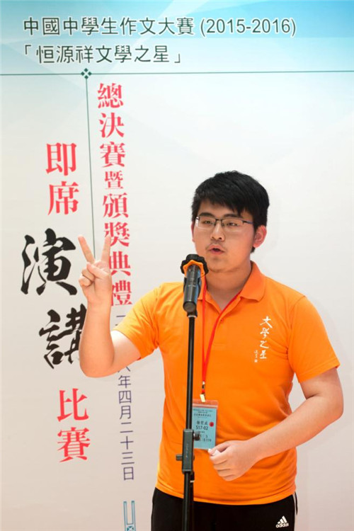 (湖北賽區(qū)“文學之星”獲得者楊哲成同學參加全國總決賽的演講環(huán)節(jié))