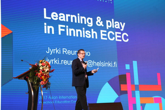 來自芬蘭、美國、德國、中國臺灣等11位國際幼兒教育專家分別圍繞“芬蘭學(xué)前教育的學(xué)習(xí)與游戲”、“游戲活動區(qū)的教學(xué)評價如何反應(yīng)兒童心理發(fā)展”、“游戲如何啟動兒童的探究性學(xué)習(xí)”、“國際借鏡:游戲如何與幼兒園課程結(jié)合”、“游戲區(qū)域活動如何開展”、“如何在園所數(shù)學(xué)教育中開展游戲化教學(xué)”、“游戲繪本課程如何擴展”、“芬蘭學(xué)前教育如何開展幼兒園藝術(shù)教學(xué)”、“國際借鏡:幼兒園團隊建設(shè)與目標(biāo)管理”、“游戲教學(xué)如何建立園所特色品牌”、“文化如何成為園所競爭力”等作了主題演講,并與參會人員積極互動與交流。
