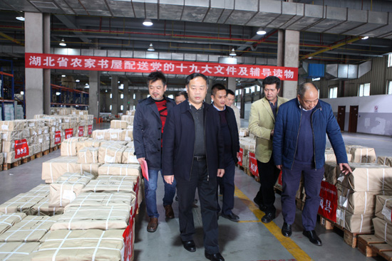 鄢桃生副局長一行還實地察看了湖北省新華書店(集團)有限公司農(nóng)家書屋配發(fā)現(xiàn)場。