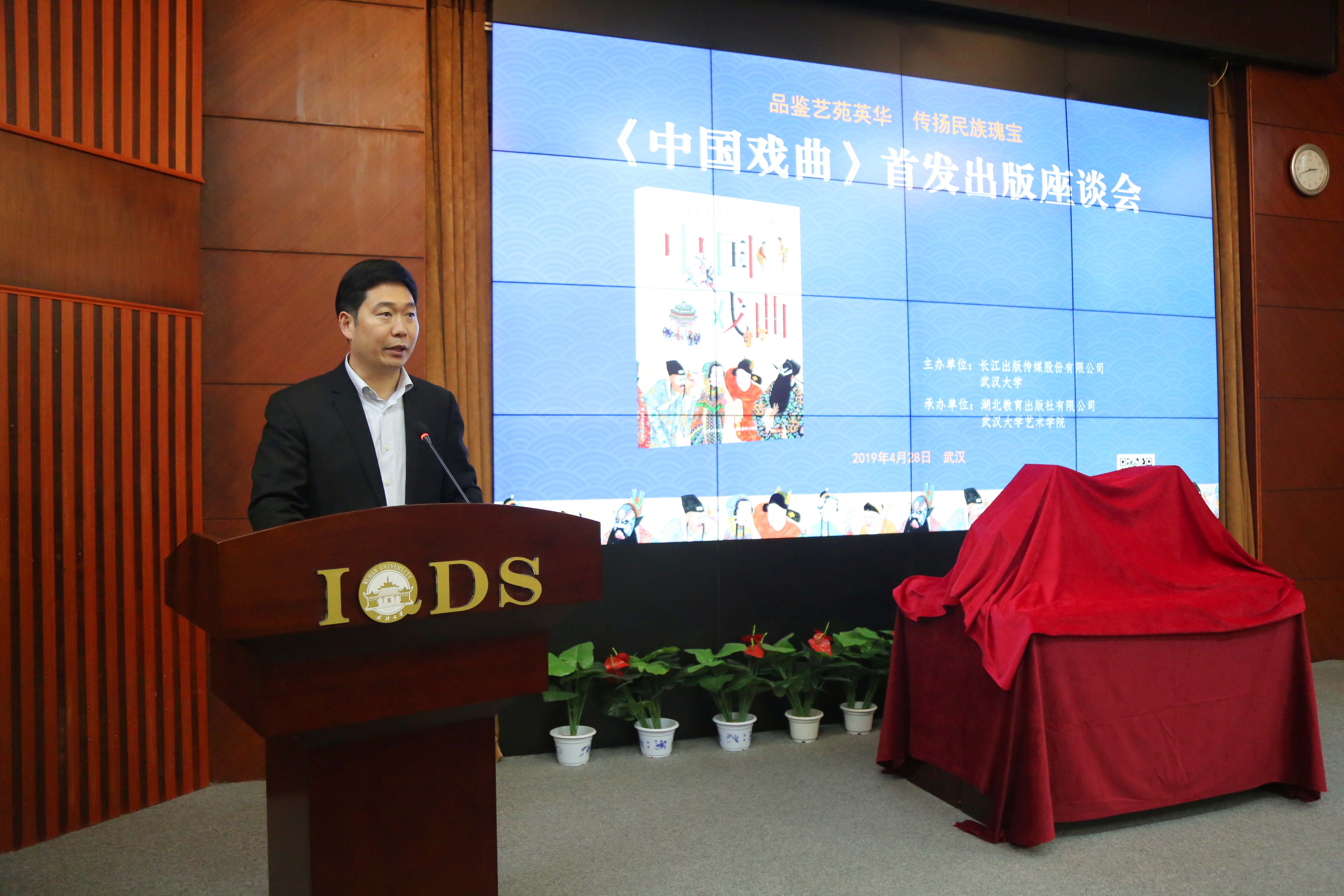 李兵副總經(jīng)理首先致辭說(shuō),《中國(guó)戲曲》全面展示了中國(guó)戲曲的發(fā)展脈絡(luò)、發(fā)展規(guī)律和審美品格,集思想性、知識(shí)性、可讀性于一體,是一部寫給大眾讀者的經(jīng)典文化藝術(shù)讀物。此次活動(dòng)既是這個(gè)春天里的一場(chǎng)文化雅集,也是持續(xù)深入實(shí)施“戲曲振興工程”、傳承民族優(yōu)秀傳統(tǒng)文化的一項(xiàng)重要舉措。長(zhǎng)江傳媒旗下的湖北教育出版社近兩年來(lái)將戲曲文化產(chǎn)品作為優(yōu)勢(shì)板塊著力打造,紙質(zhì)出版和數(shù)字化平臺(tái)同步開(kāi)發(fā),并積極策劃和組織“戲曲進(jìn)校園”活動(dòng),讓中小學(xué)生以及文化藝術(shù)愛(ài)好者在讀、賞、學(xué)中了解戲曲藝術(shù),真切感受戲曲魅力,體現(xiàn)了出版社為傳承弘揚(yáng)中華優(yōu)秀傳統(tǒng)文化應(yīng)有的擔(dān)當(dāng)和責(zé)任感。