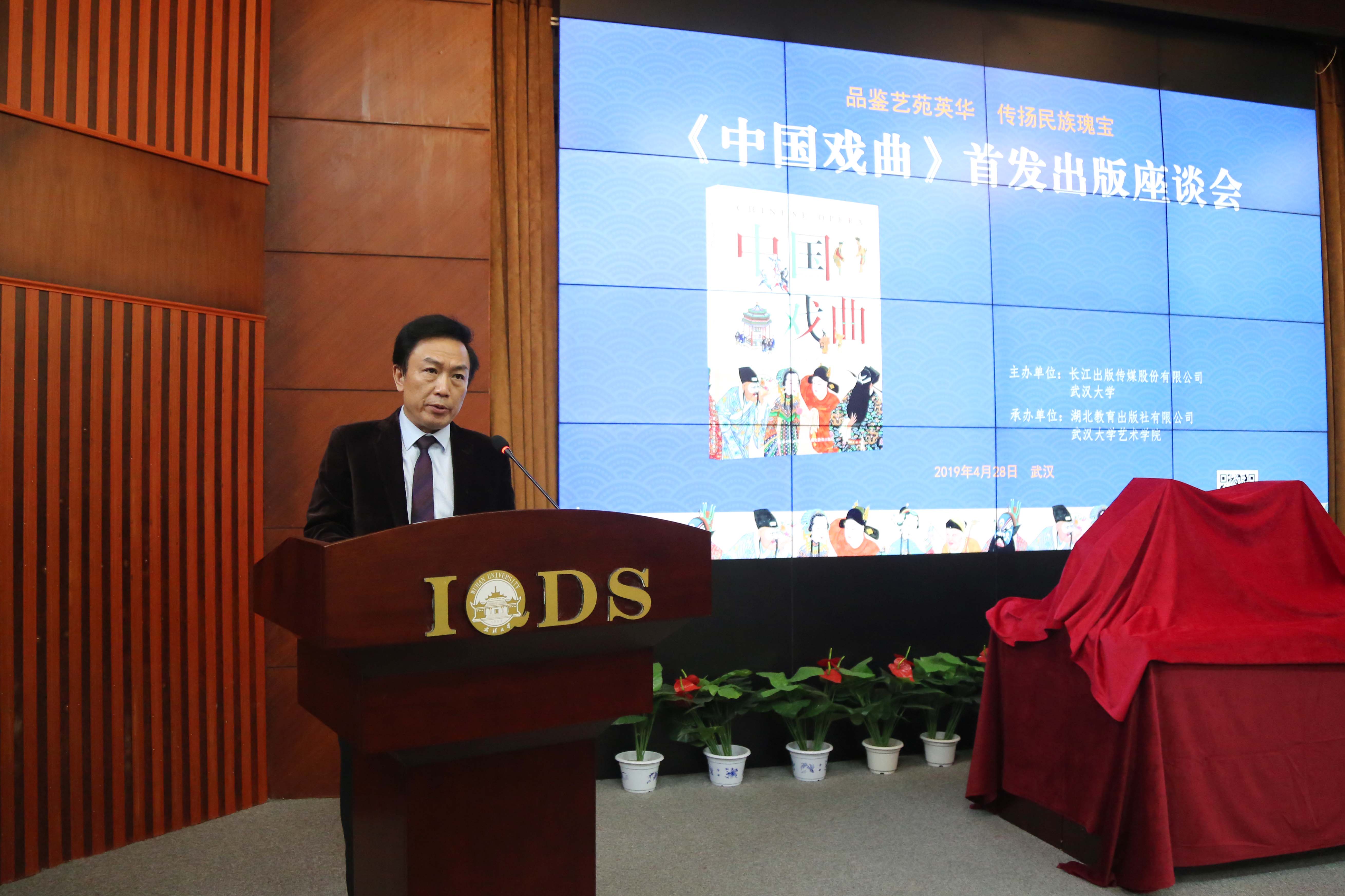 4月28日下午,“品鑒藝苑英華 傳揚(yáng)民族瑰寶——《中國(guó)戲曲》首發(fā)出版座談會(huì)”在武漢大學(xué)舉行?!吨袊?guó)戲曲》是著名戲曲理論家、武漢大學(xué)戲劇戲曲學(xué)科創(chuàng)立者鄭傳寅帶有普及性質(zhì)的學(xué)術(shù)新著,最近由湖北教育出版社出版。此次活動(dòng)由長(zhǎng)江出版?zhèn)髅焦煞萦邢薰?、武漢大學(xué)主辦,湖北教育出版社、武漢大學(xué)藝術(shù)學(xué)院承辦。
