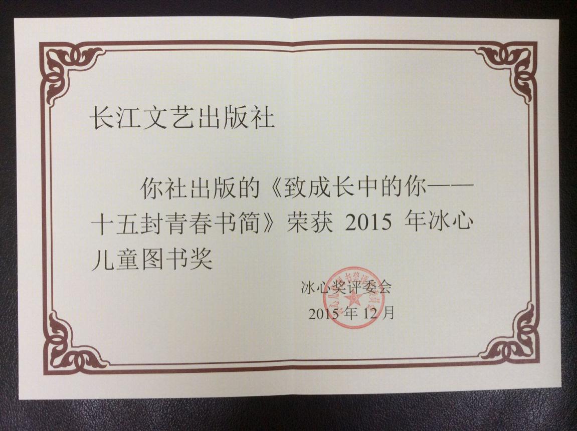 長(zhǎng)江文藝社《致成長(zhǎng)中的你》獲2015冰心兒童圖書(shū)獎(jiǎng)