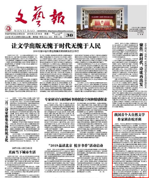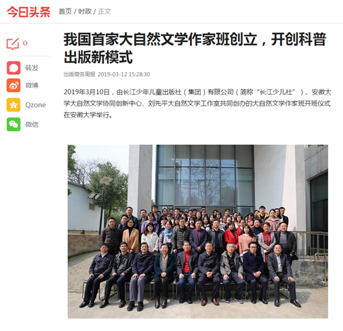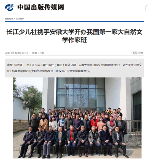 2019年3月10日,由長江少年兒童出版社(集團(tuán))有限公司、安徽大學(xué)大自然文學(xué)協(xié)同創(chuàng)新中心、劉先平大自然文學(xué)工作室聯(lián)合舉辦的大自然文學(xué)作家班開班儀式在安徽大學(xué)隆重舉行。