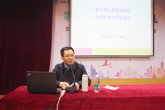 叢書總主編、北京師范大學(xué)教授程曉堂主講了一場題為《基于核心素養(yǎng)的英語閱讀價值與實施途徑》的講座。他認為,閱讀是培養(yǎng)英語學(xué)科核心素養(yǎng)的關(guān)鍵。英語閱讀的現(xiàn)實功能是增長知識,豐富經(jīng)驗和情感,加深對世界的認識,體驗語言文學(xué)之美。英語閱讀的教學(xué)功能是擴大語言輸入,感知語言的使用,學(xué)習(xí)語言知識,包括詞匯、語法、語篇知識,訓(xùn)練英語閱讀技能。英語閱讀教學(xué)應(yīng)該把英語閱讀的現(xiàn)實功能與教學(xué)功能結(jié)合起來,還要把課堂英語閱讀教學(xué)與學(xué)生課外英語閱讀相結(jié)合,把閱讀英美背景的材料與閱讀中國背景的材料結(jié)合起來。