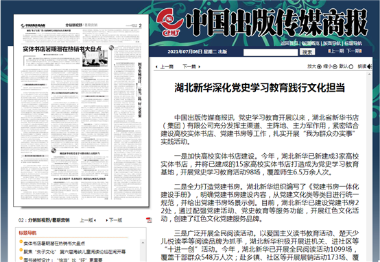 中國出版?zhèn)髅缴虉?bào) | 湖北新華深化黨史學(xué)習(xí)教育踐行文化擔(dān)當(dāng)